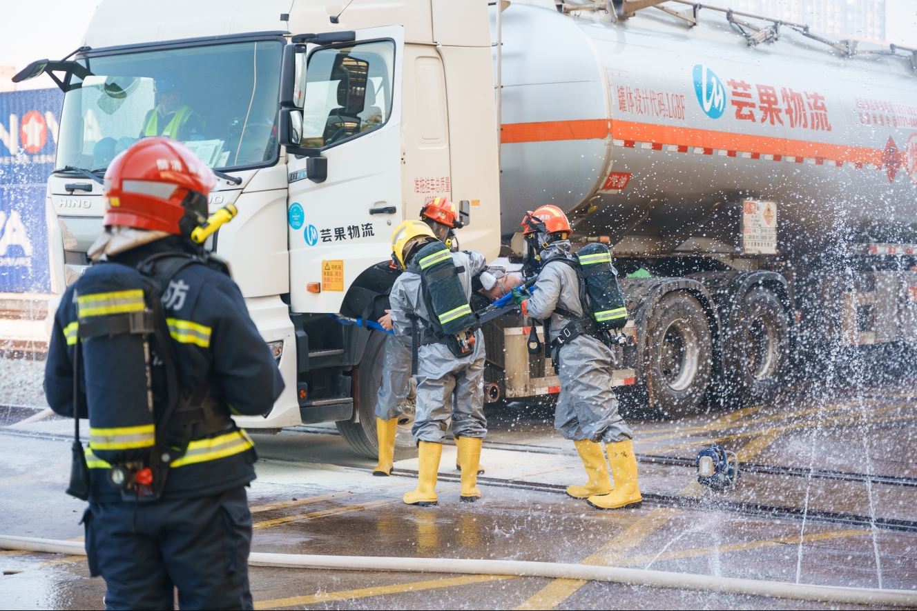 11月21日,2025年長沙市鐵路專用線道口危化品事故綜合應急演練在長沙新港公司舉行,演練由長沙市交通運輸局主辦,長沙新港公司承辦,長沙市市生態環境局、開福區消防救援大隊、長沙泰和醫院參加。 演練模擬一輛裝有甲醇二甲胺的危化品槽罐車經過鐵路道口時,因雨天路滑發生事故,導致裝載物泄露,一名司乘人員被困車內,一列火車即將通過道口,情況十分危急。道口值班人員發現事故后,第一時間通知車站信號樓,并緊急采用手旗信號截停列車,避免發生二次事故并造成更嚴重的后果,同時,值班員迅速向長沙新港公司報告事故情況,包括泄漏罐車的位置、泄漏程度、是否有起火、人員受困或傷亡等信息,長沙新港公司迅速啟動應急預案。應急救援、警戒疏散等多個小組攜帶裝備5分鐘內集結完畢,奔赴事故現場處置。隨后,消防救援人員、醫療救護人員、環境監測人員等各司其職,聯合處置了這一起突發事件。