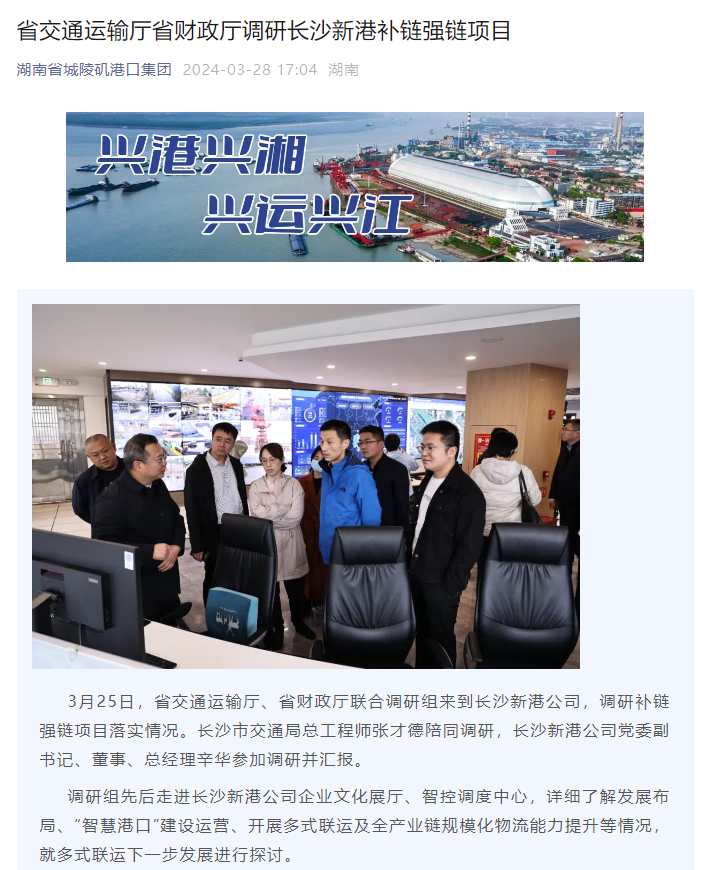 省交通運輸廳省財政廳調(diào)研長沙新港補鏈強鏈項目