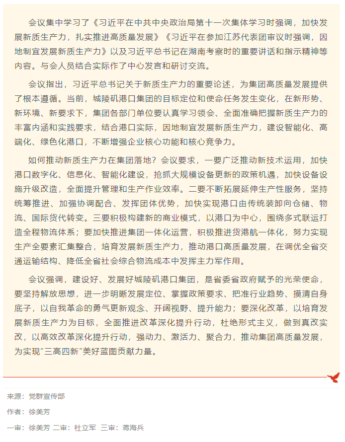 城陵磯港口集團(tuán)黨委中心組開(kāi)展2024年第二次集體學(xué)習(xí)