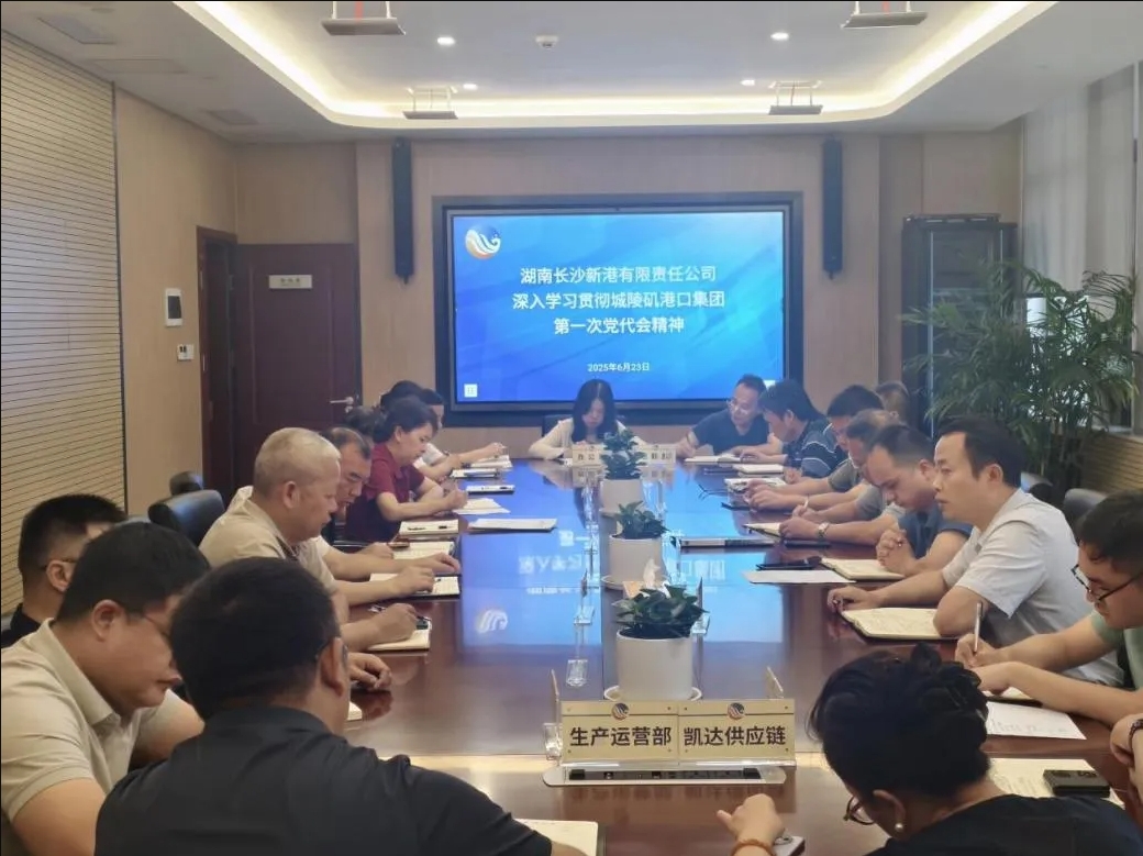 6月23日,長沙新港公司召開專題學習會,傳達學習城陵磯港口集團第一次黨代會精神,部署貫徹落實工作。公司黨委班子、各部門主要負責人參會。