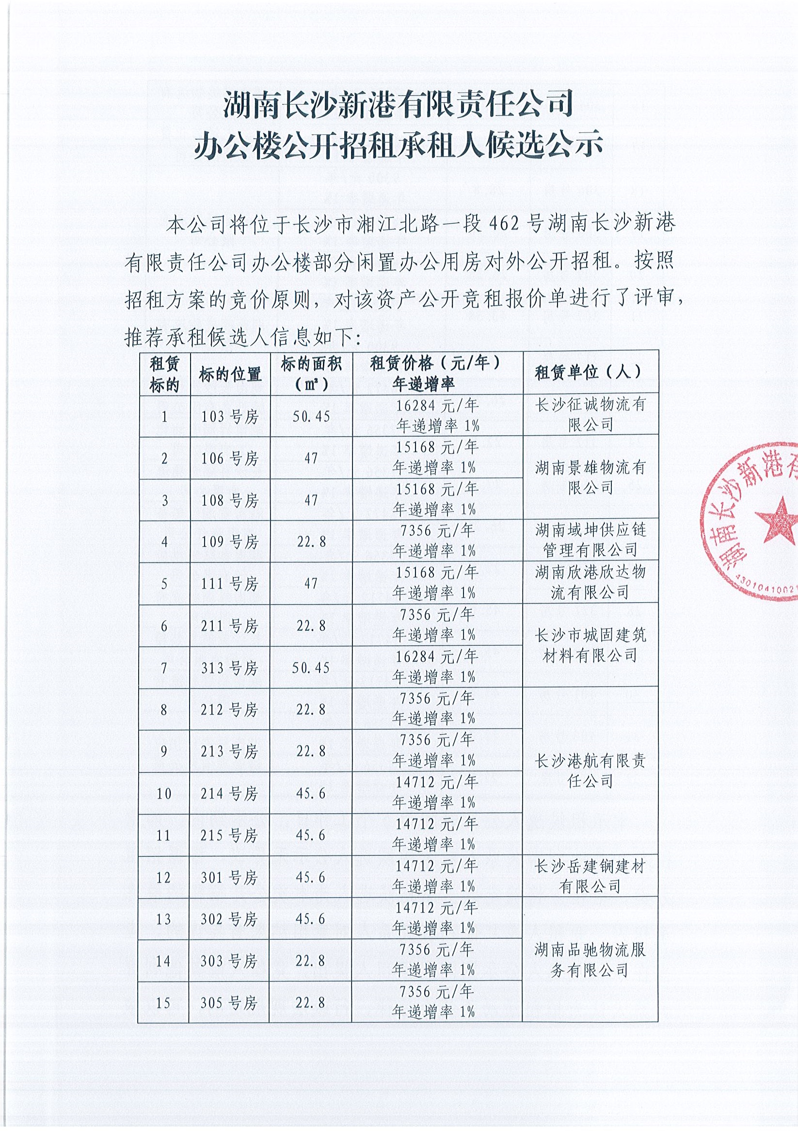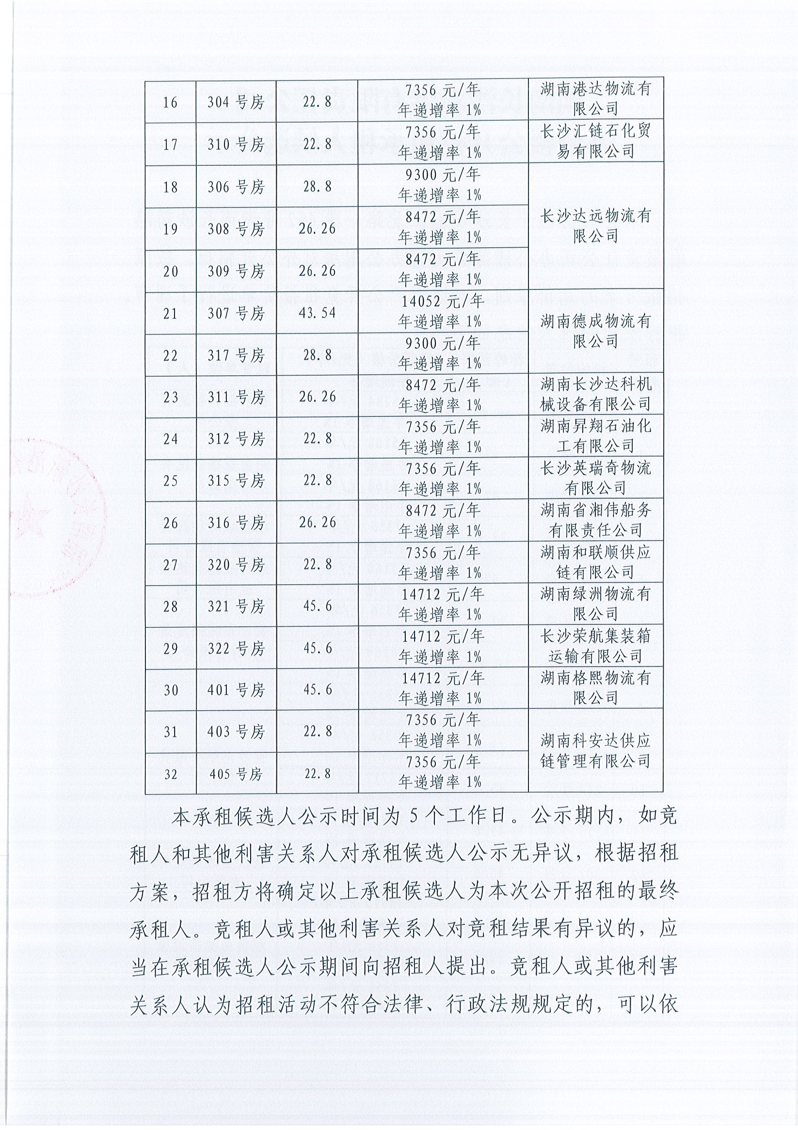 辦公樓公開招租承租人候選公示