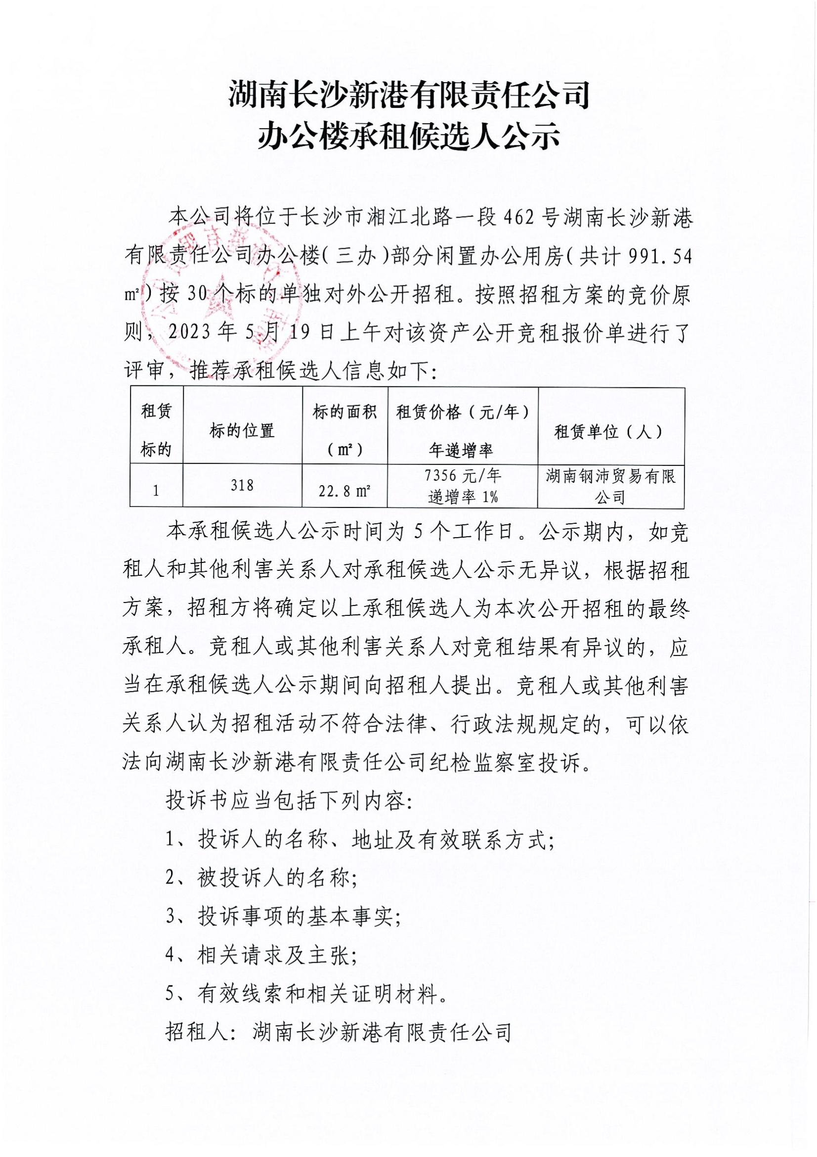辦公樓承租候選人公示