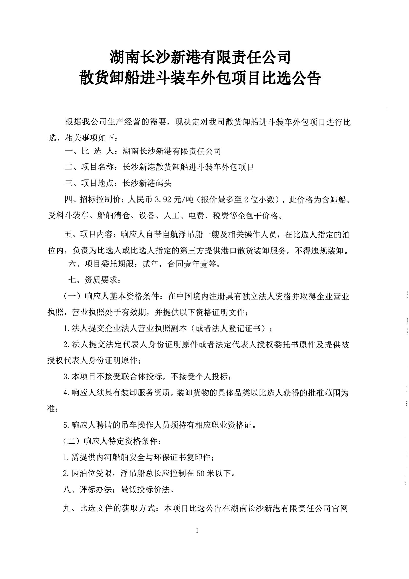 湖南長沙新港有限責任公司散貨卸船進斗裝車外包項目比選公告
