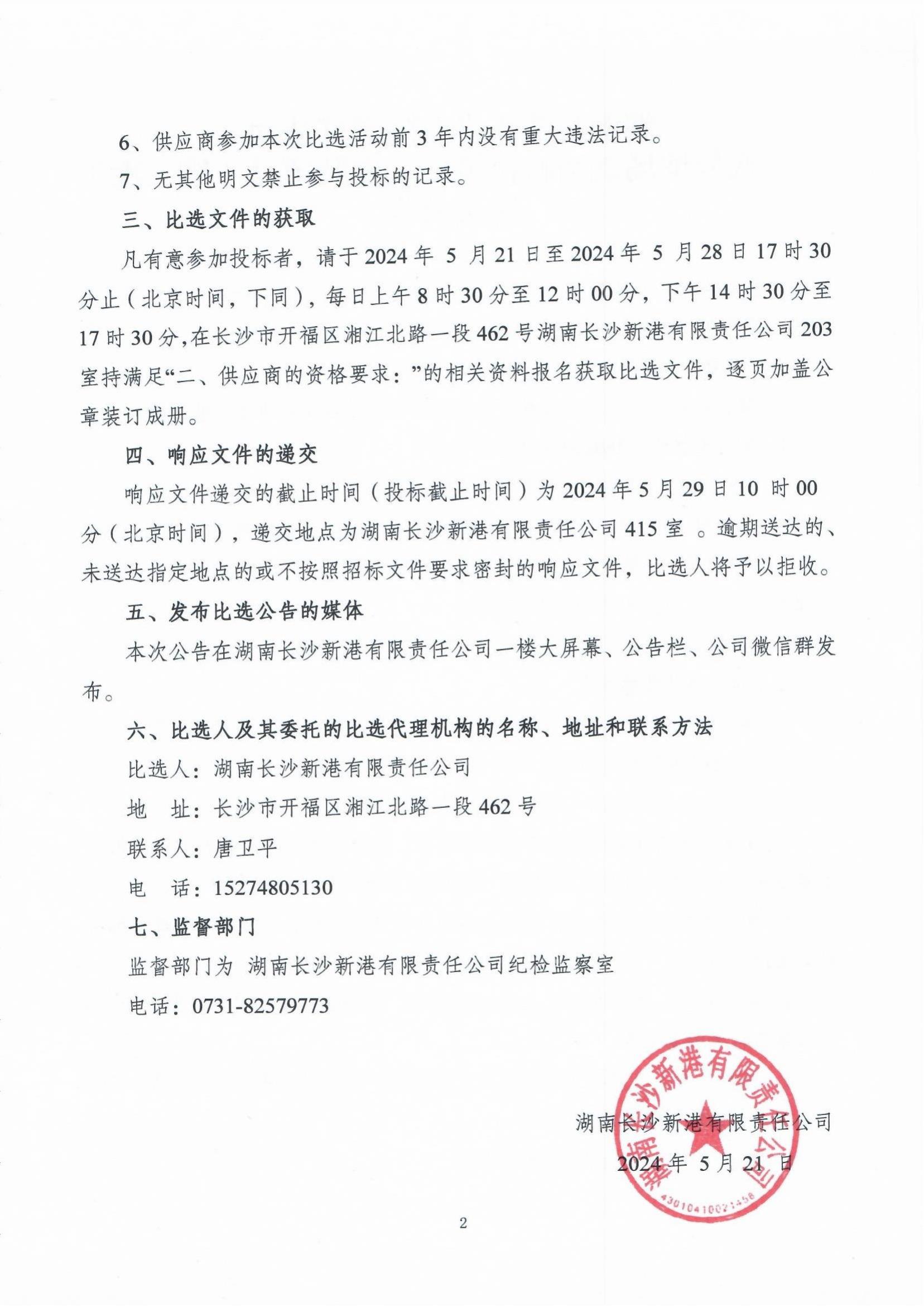 湖南長沙新港有限責任公司八號堆場鋼結構雨棚采購安裝項目(第二次)比選公告